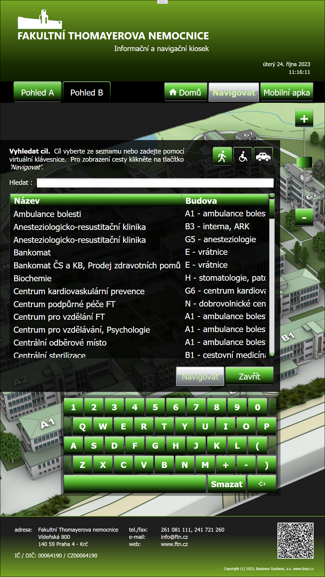 Dodáváme interaktivní navigační systémy pro nemocnice, úřady nebo jiné rozsáhlé budovy a komplexy budov, které mají za cíl zjednodušit a zrychlit orientaci návštěvníků v jejich prostorách.